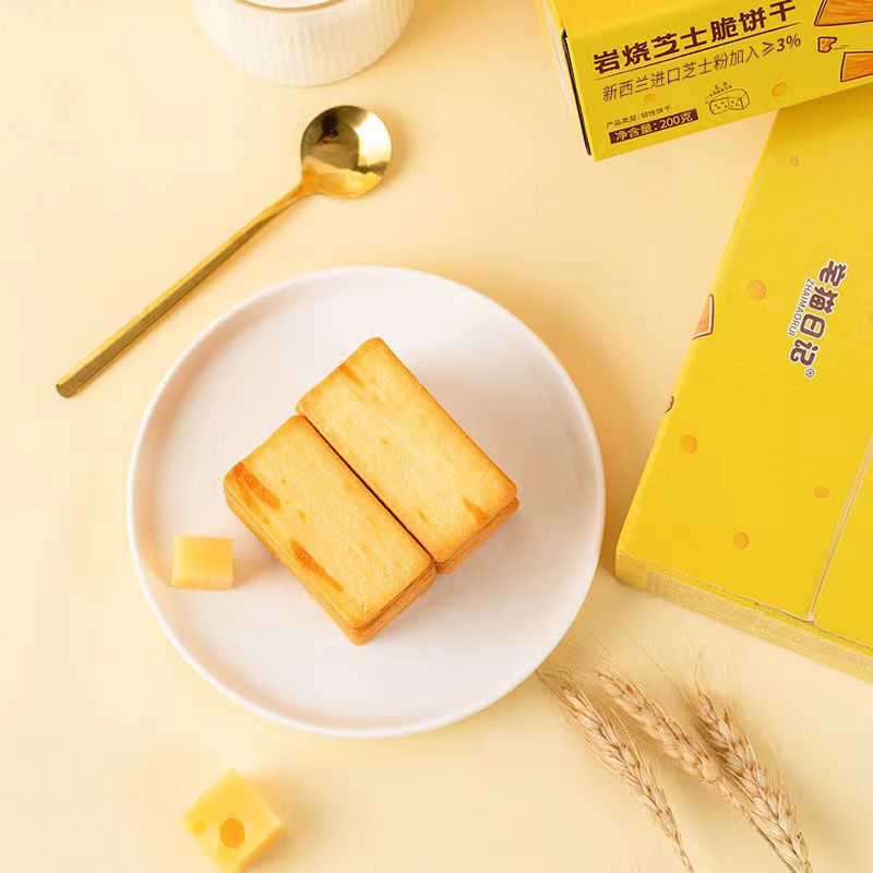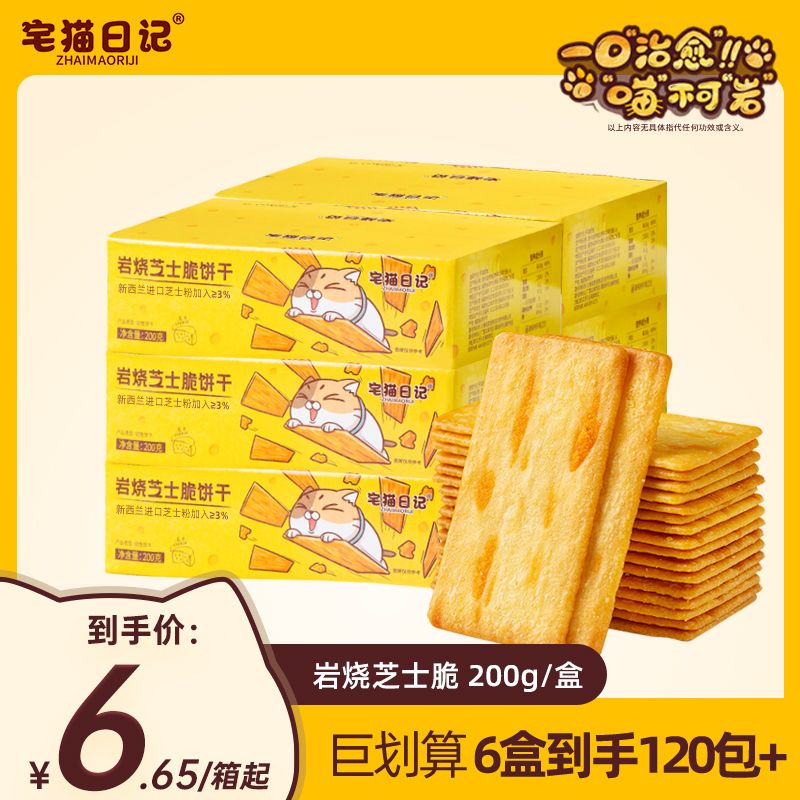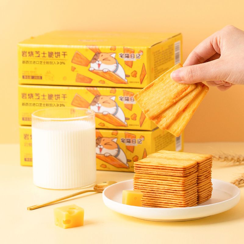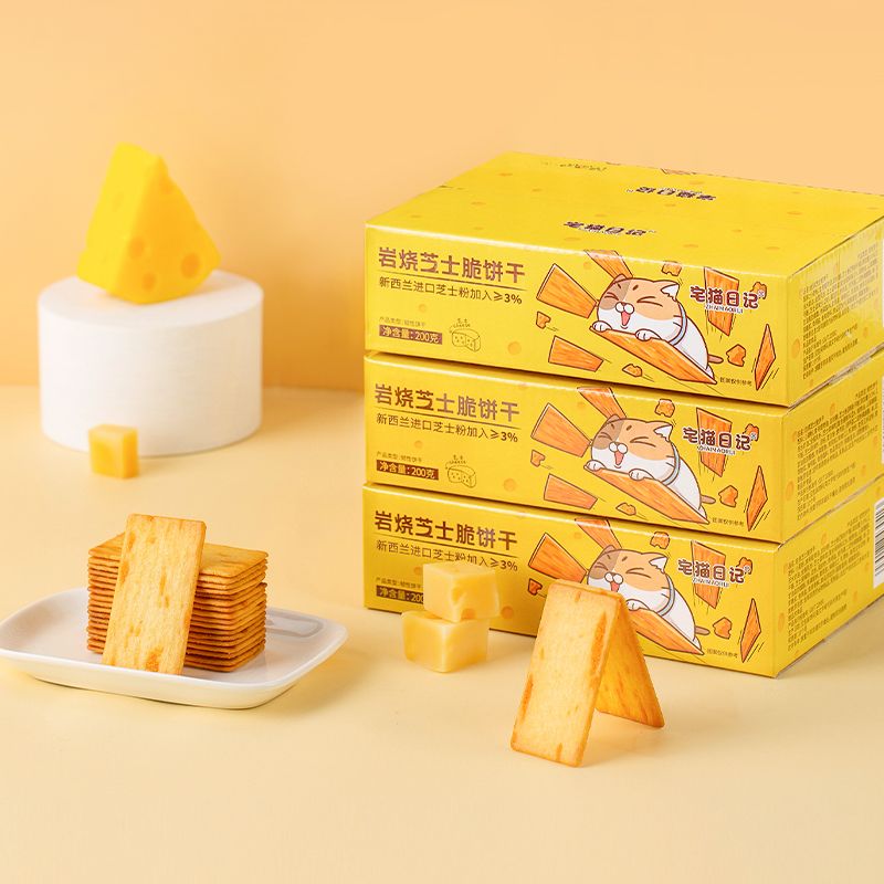宅猫日记岩烧芝士脆饼干200g咸甜薄脆下午茶办公室小零食囤货整箱
