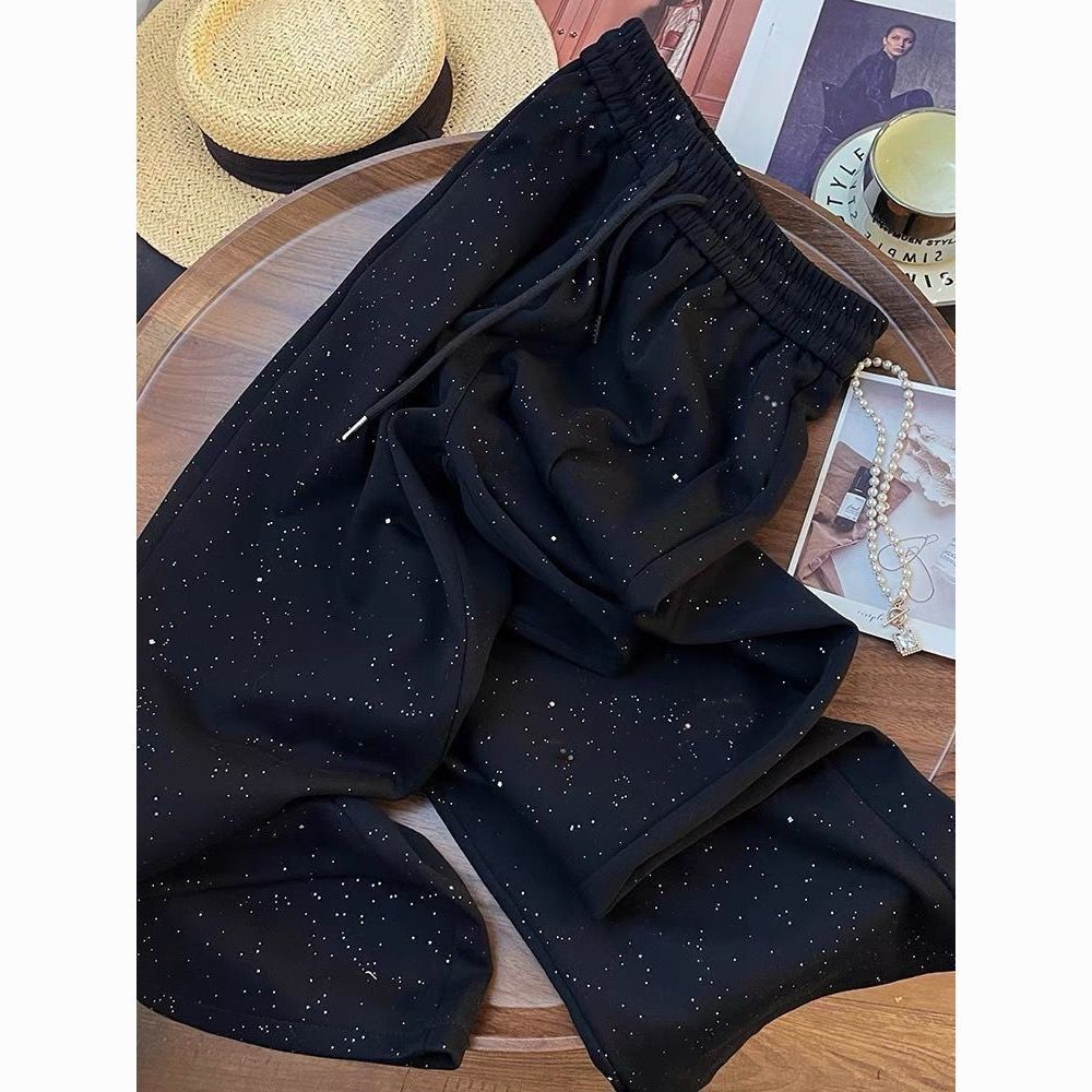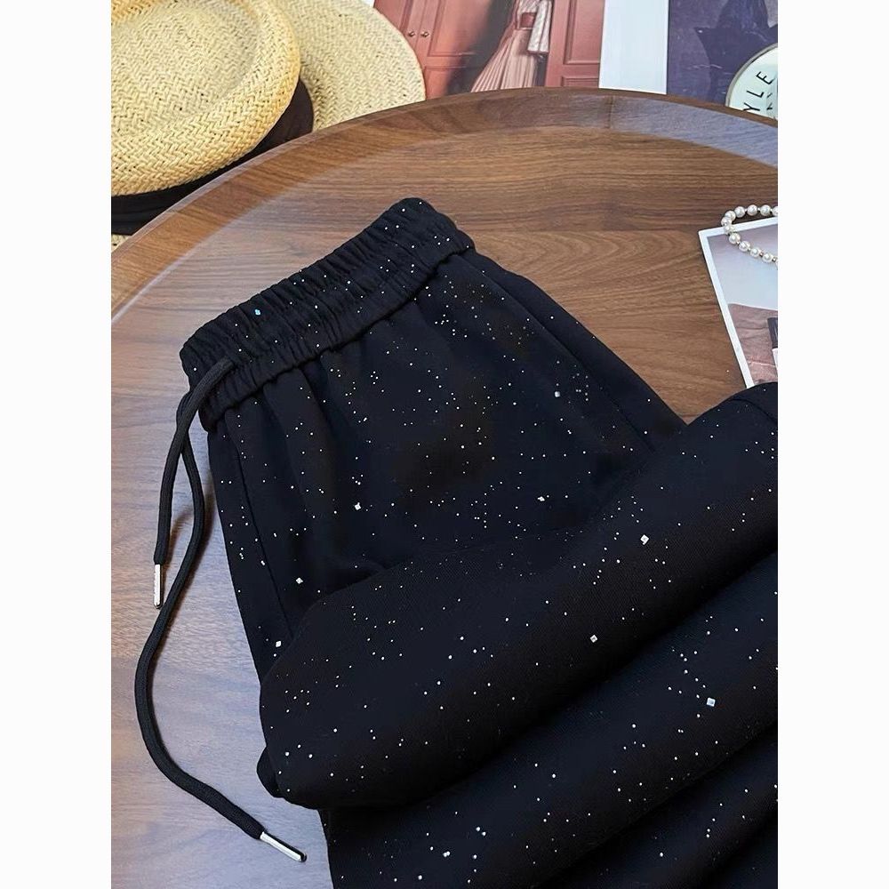 洋气满天星亮闪闪春秋新款阔腿裤小众休闲直筒裤子高腰显瘦长裤女