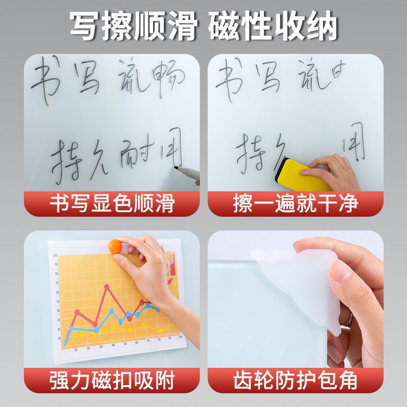 齐富哑光磁性钢化玻璃白板可移动支架式家用黑板挂式办公教学会议