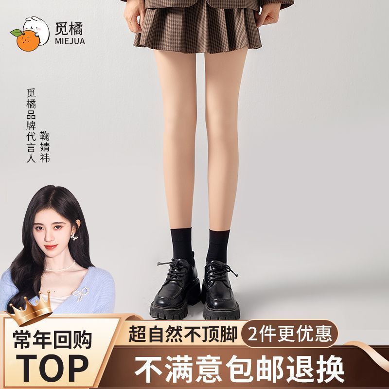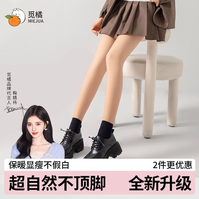 觅橘双层裤袜光腿神器女秋冬自然肤色黑丝打底裤袜明星同款蓝装pt