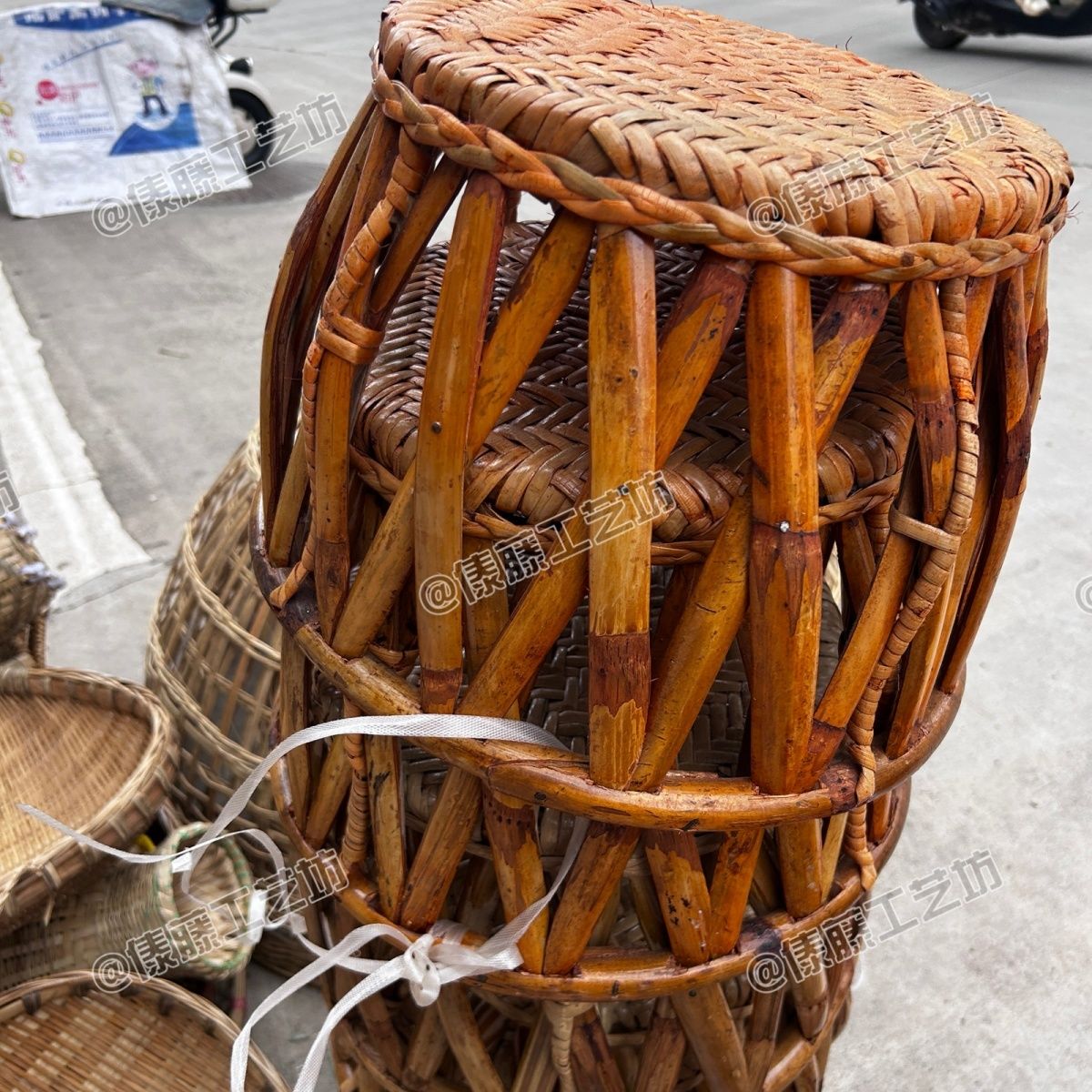 缅甸云南藤编凳子手工坐墩编织坐凳圆凳矮凳家居家用藤凳儿童换鞋