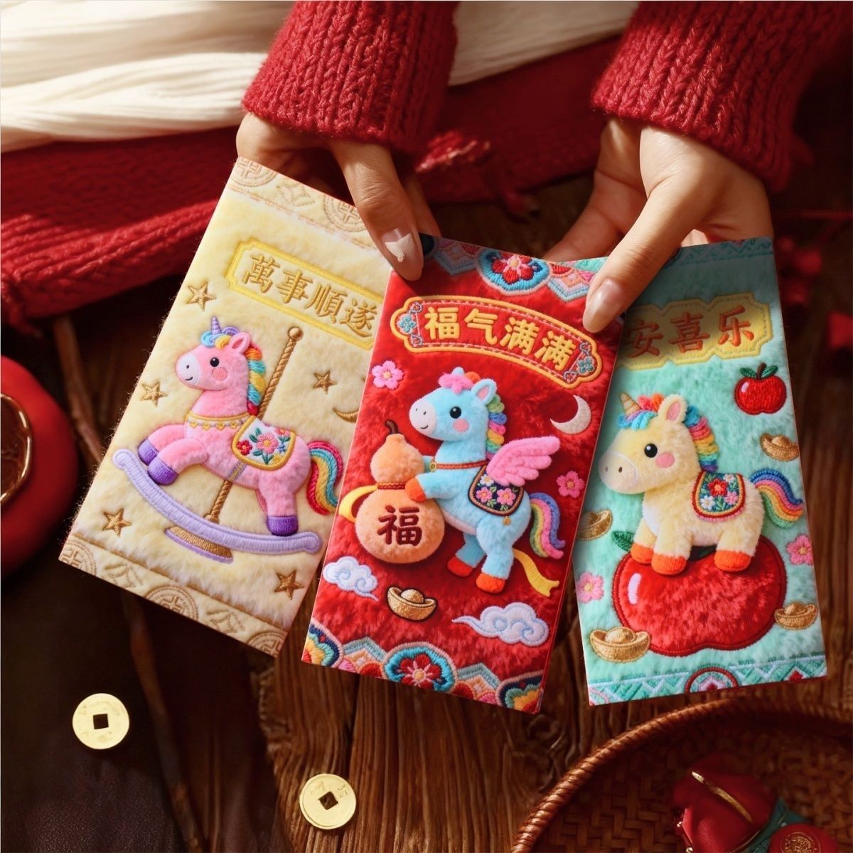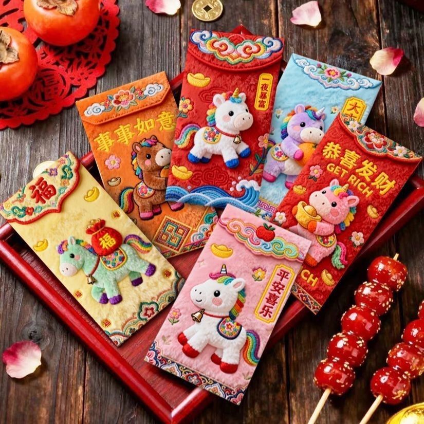2026抖音爆款马年刺绣毛绒平面红包创意春节压岁利是拜年