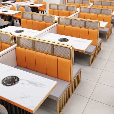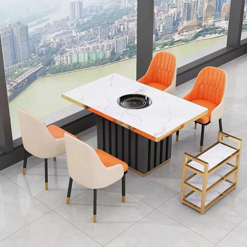 【源头工厂】火锅桌电磁炉一体岩板卡座实木烤肉商用无烟桌椅组合
