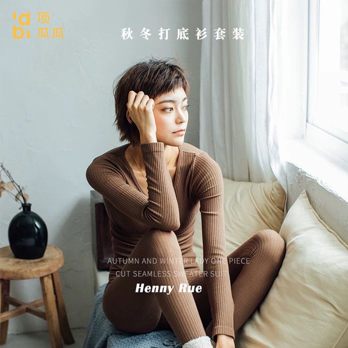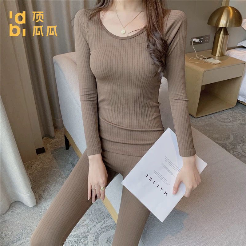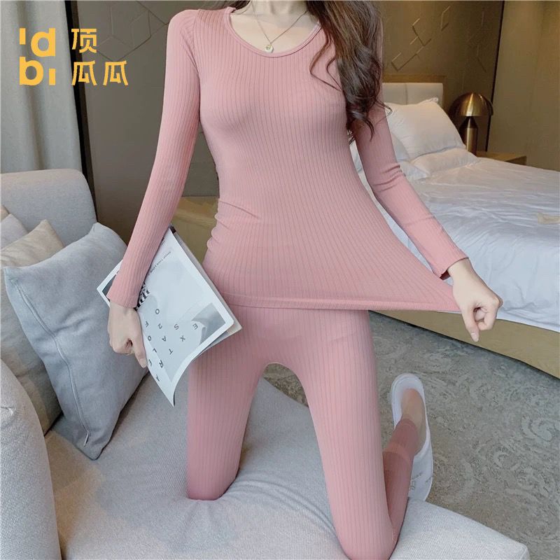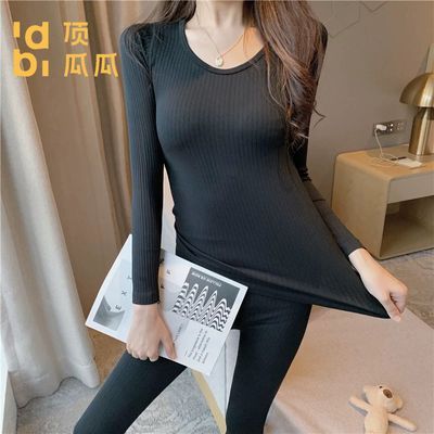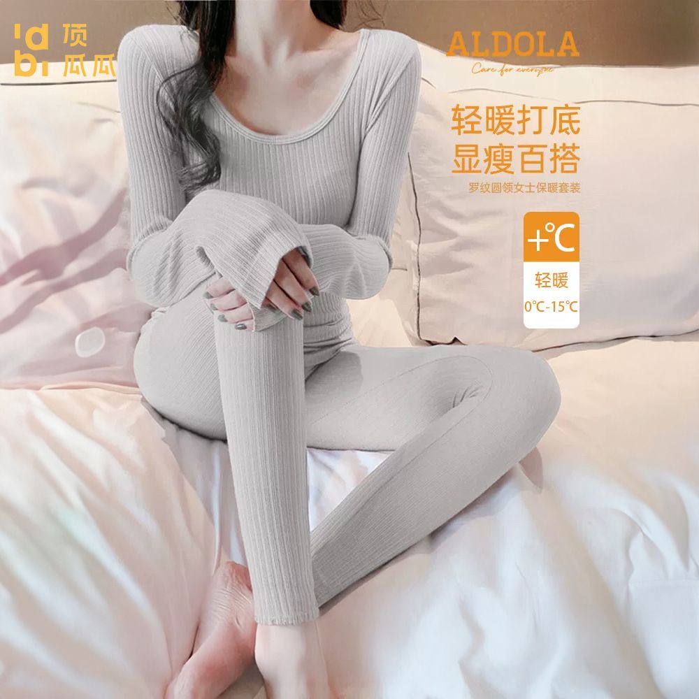 顶瓜瓜保暖内衣女士秋冬季圆领打底衫美体修身保暖秋衣秋裤套装