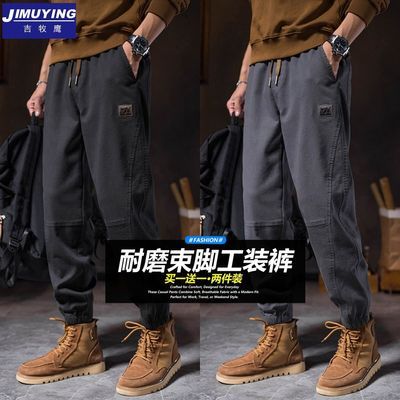 户外工地干活耐磨束脚工装裤子男春秋季宽松大码运动舒适休闲长裤