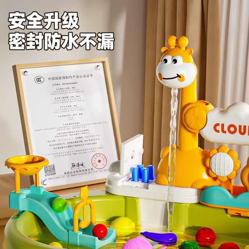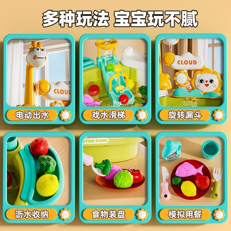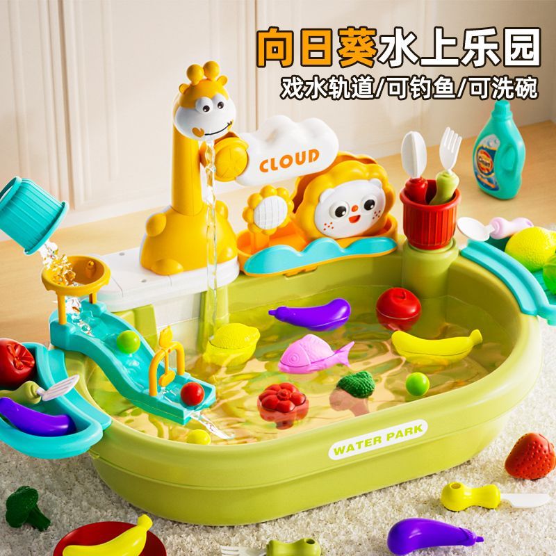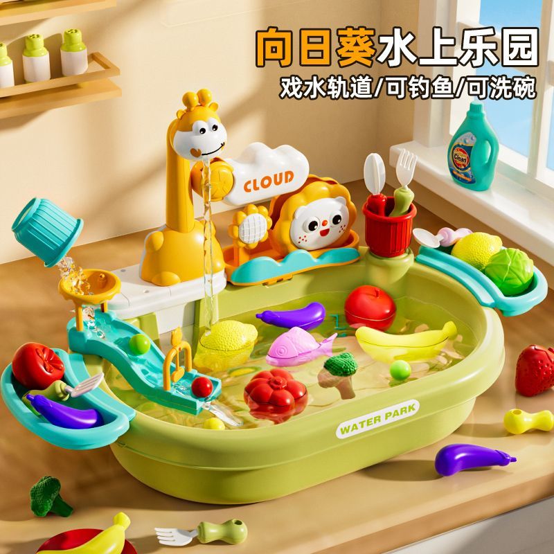 纽奇洗碗机儿童电动循环戏水玩具向日葵水上乐园可钓鱼可洗碗玩具