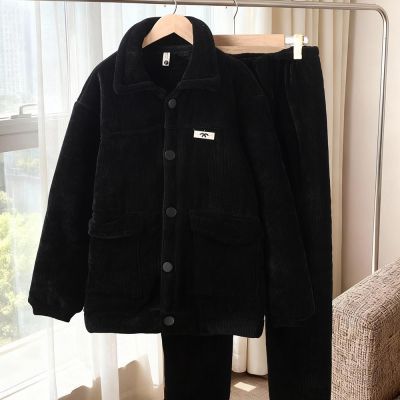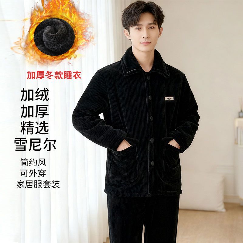 雪尼尔男士三层加厚睡衣冬季套装居家外出保暖外穿家居服