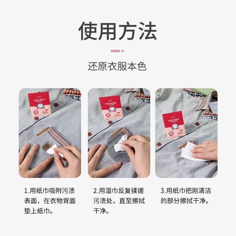 衣物去渍湿巾羽绒服清洁湿巾去污去油擦鞋湿纸巾便携应急免水洗