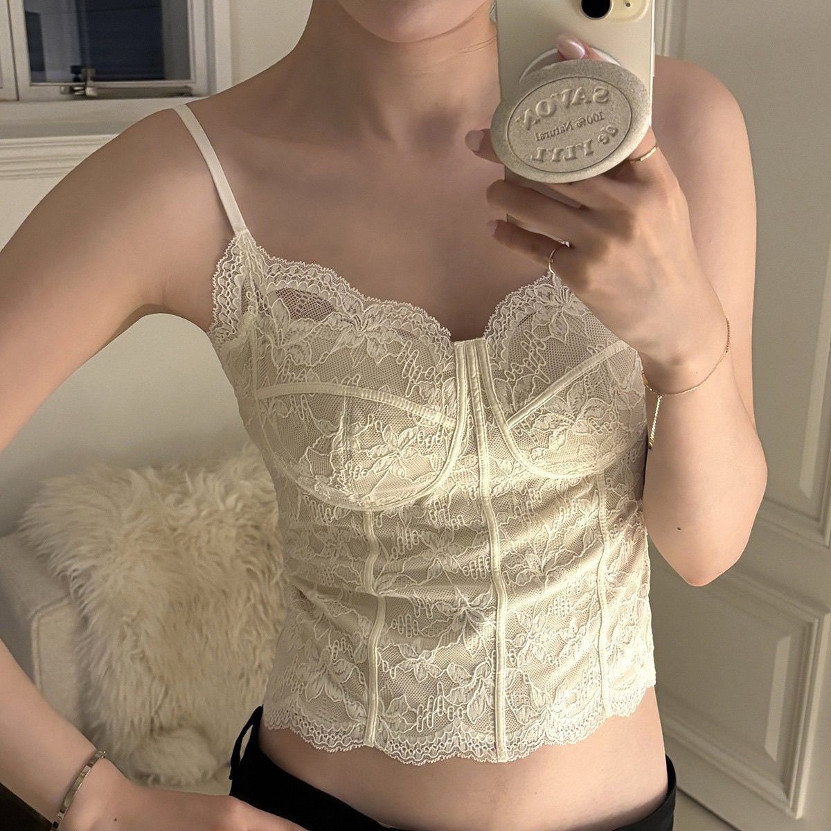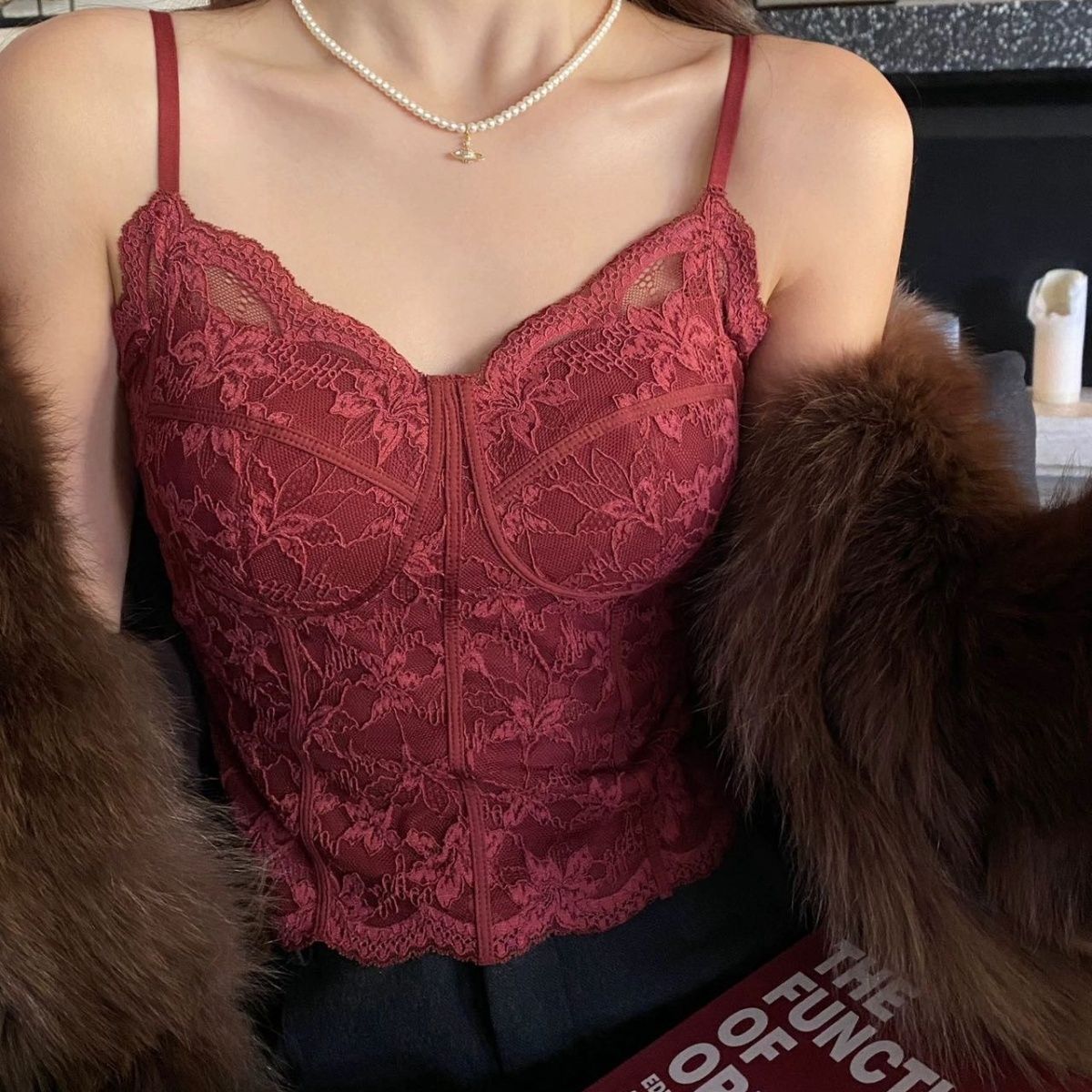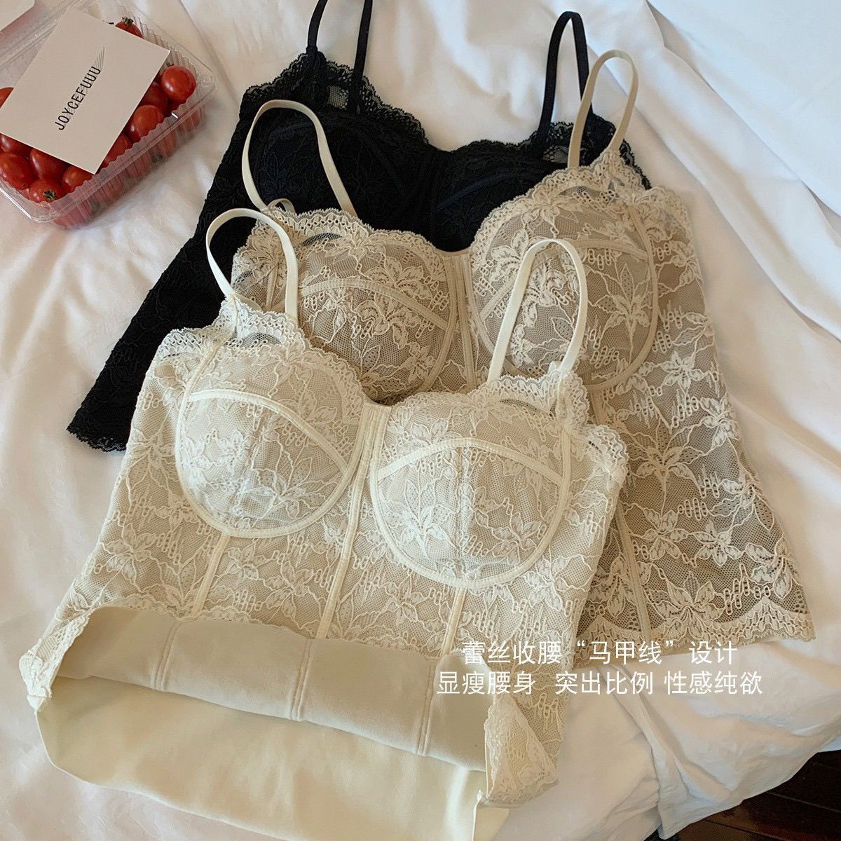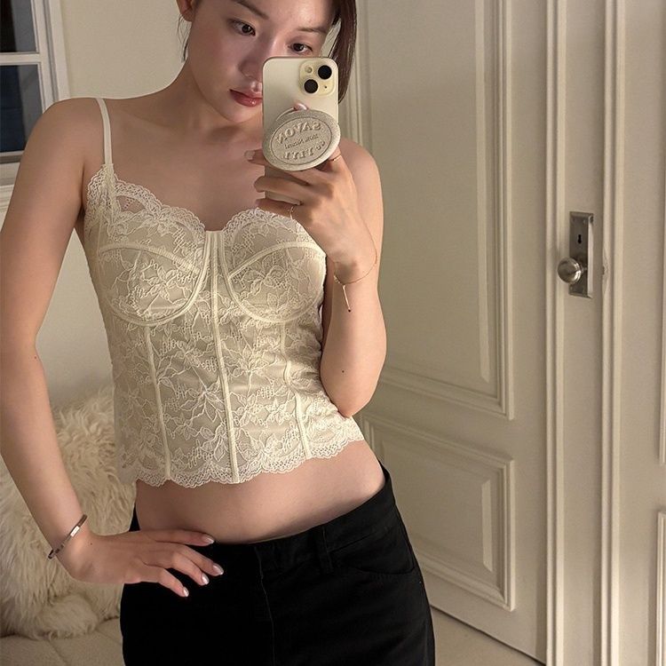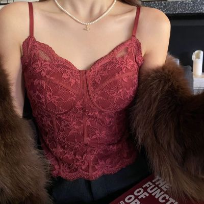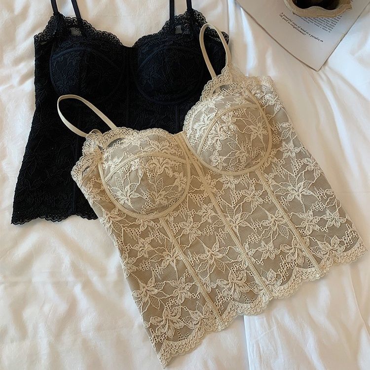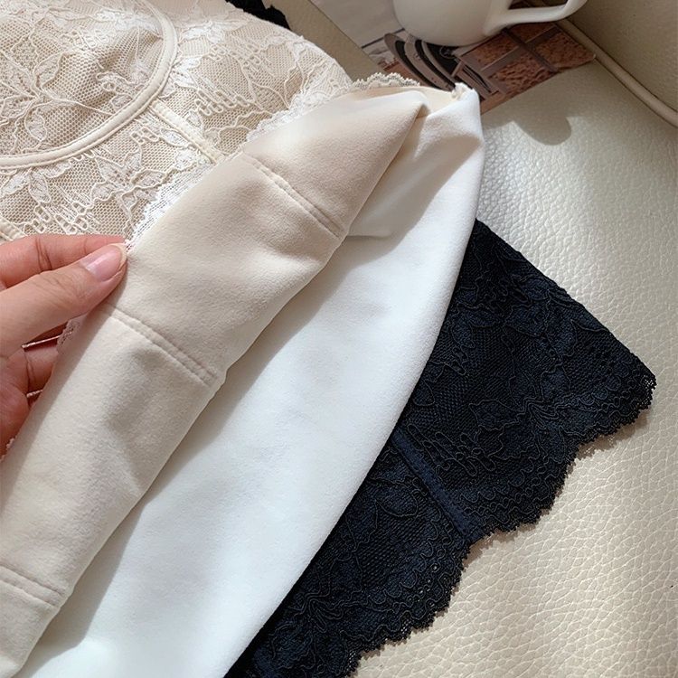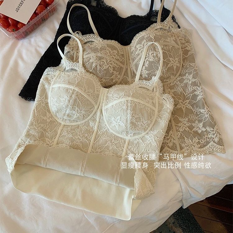 【加厚磨毛】纯欲风复古法式蕾丝背心收腰磨毛带胸垫美背内搭外穿【3天内发货】