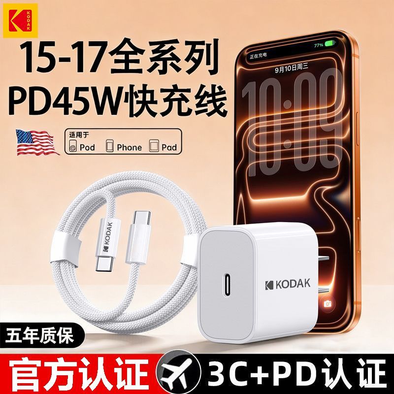 柯达官方PD45W适用苹果17Pro编织快充线17/16/15Promax快充数据线