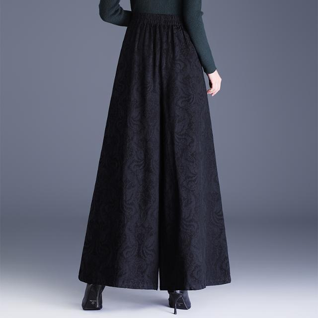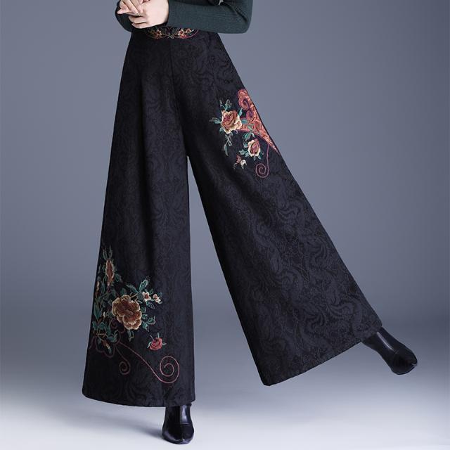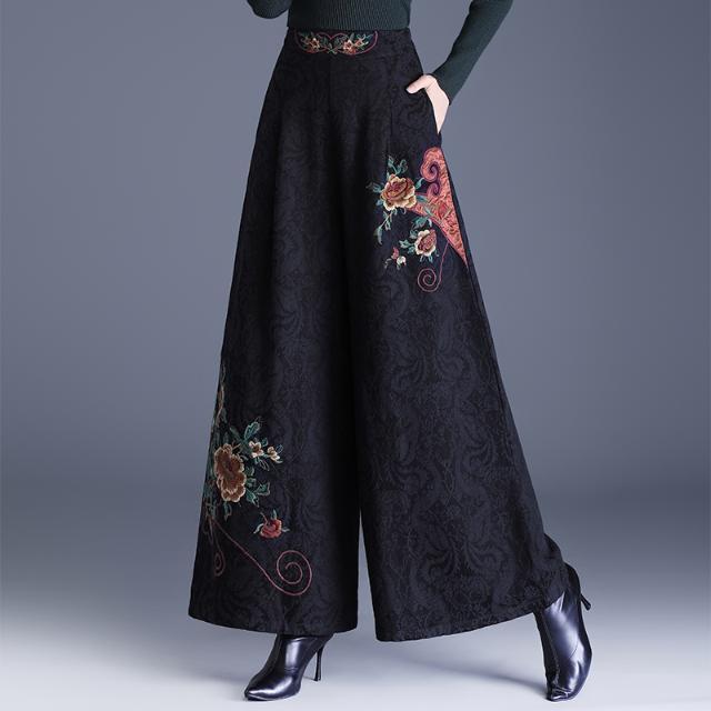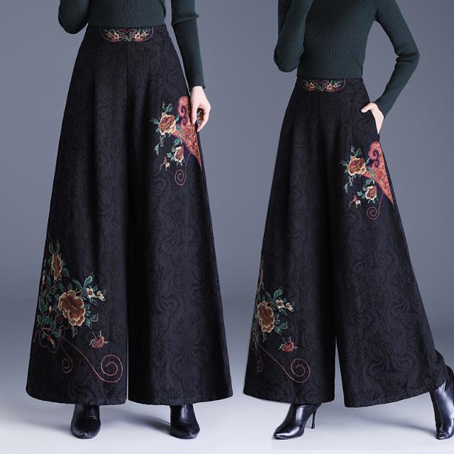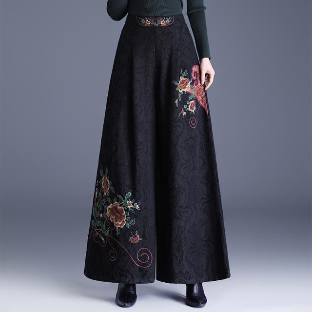民族风提花棉麻阔腿裤2025新中式绣花大码直筒裤高腰休闲裤女长裤