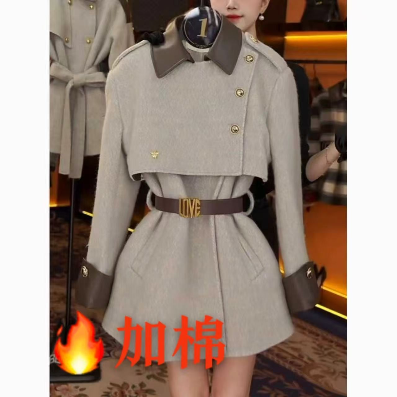 2025小香风新款气质毛呢加厚夹棉拼接轻奢外套加厚保暖收腰大衣