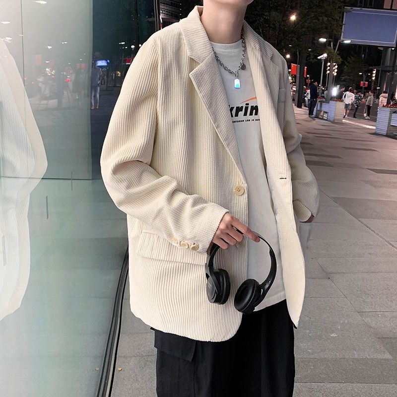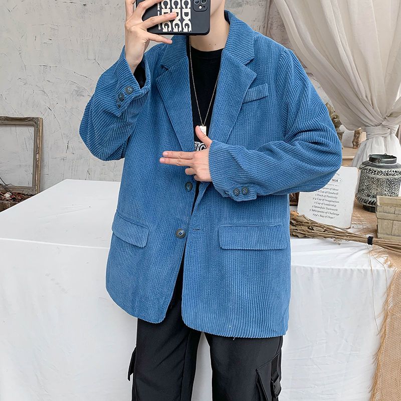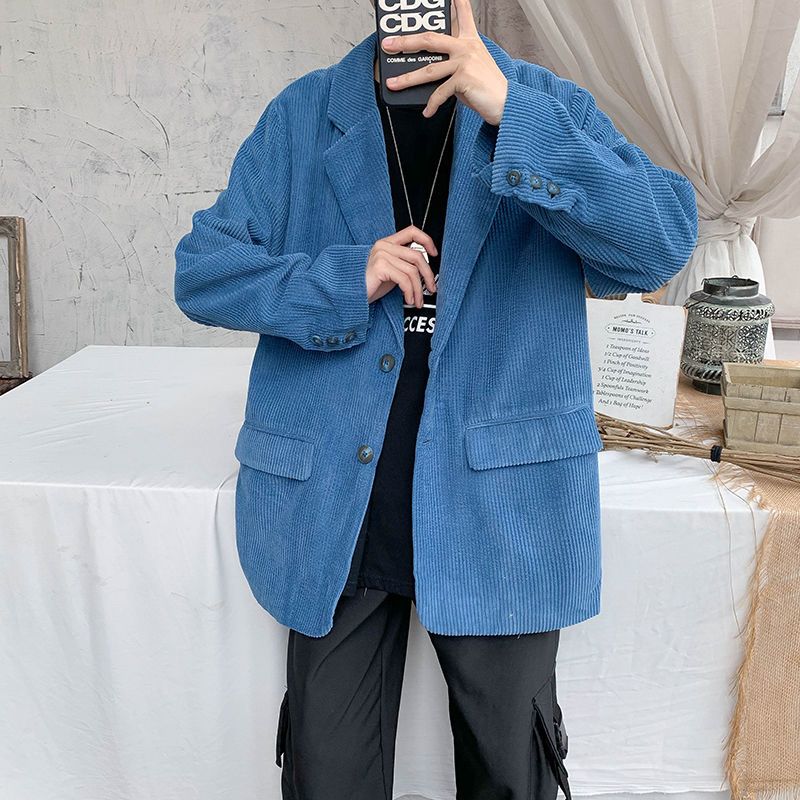 秋季休闲西服男士新款灯芯绒宽松西装韩版潮流港风灯芯绒外套上衣