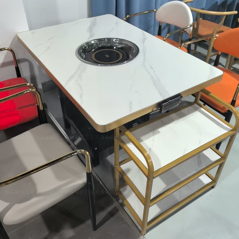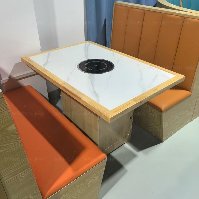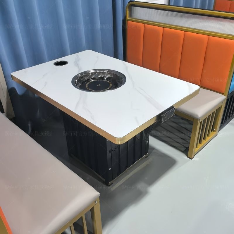 火锅桌子电磁炉一体烧肉串串香多功能电磁炉一体火锅桌椅组合