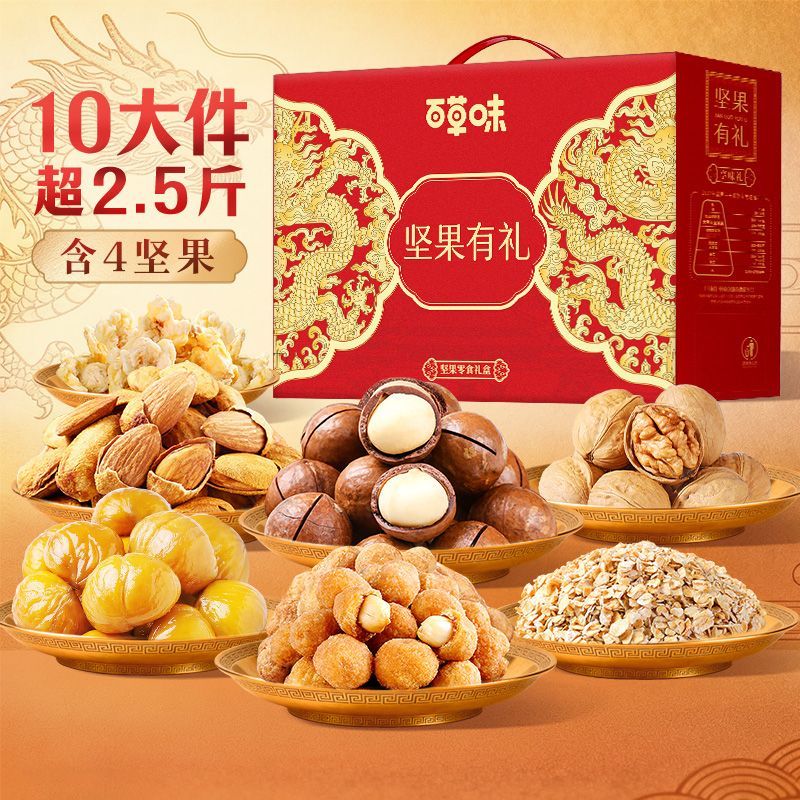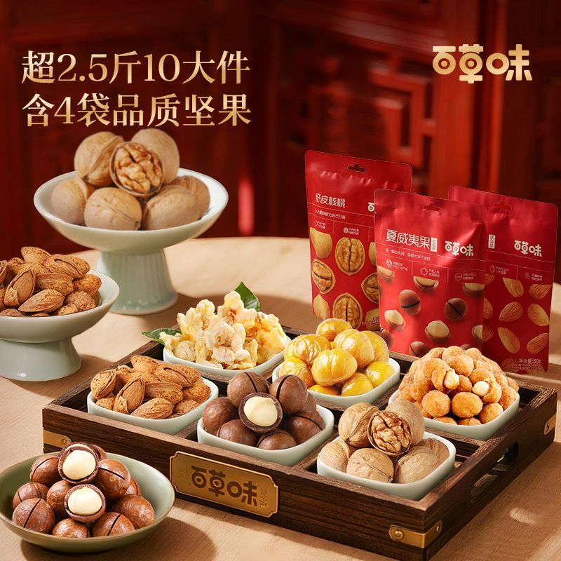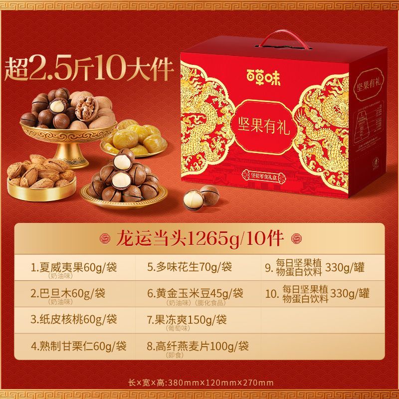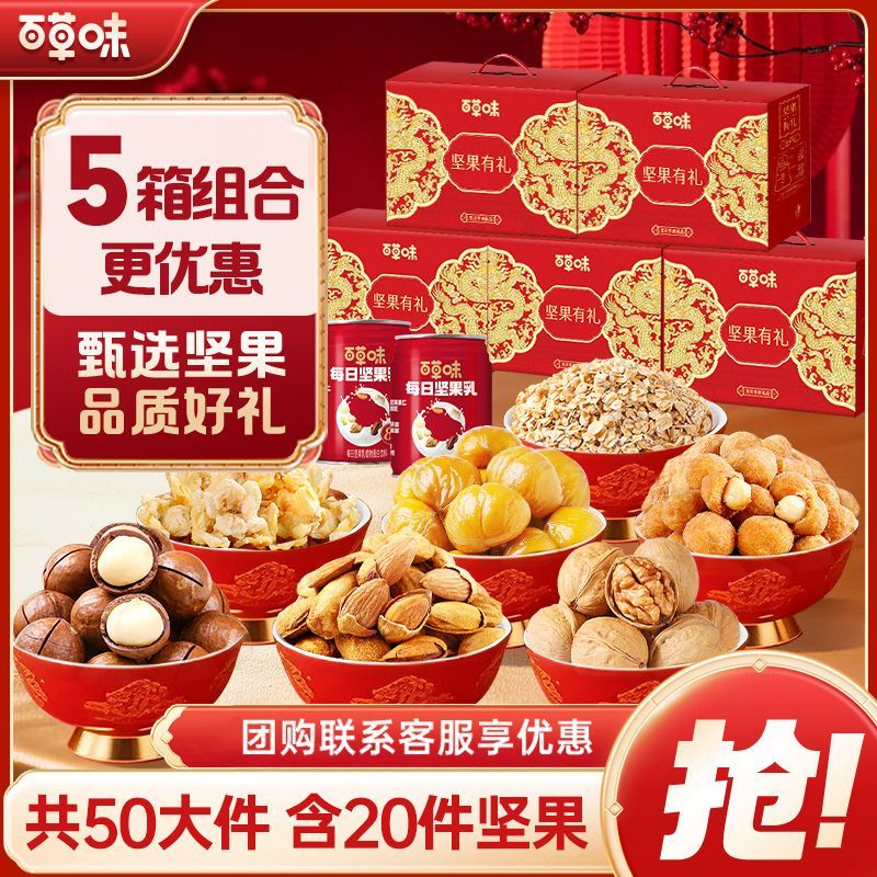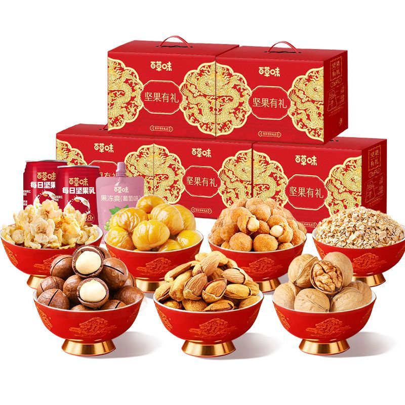 【5箱】百草味坚果礼盒装1265g核桃巴旦木坚果零食年货节送礼团购