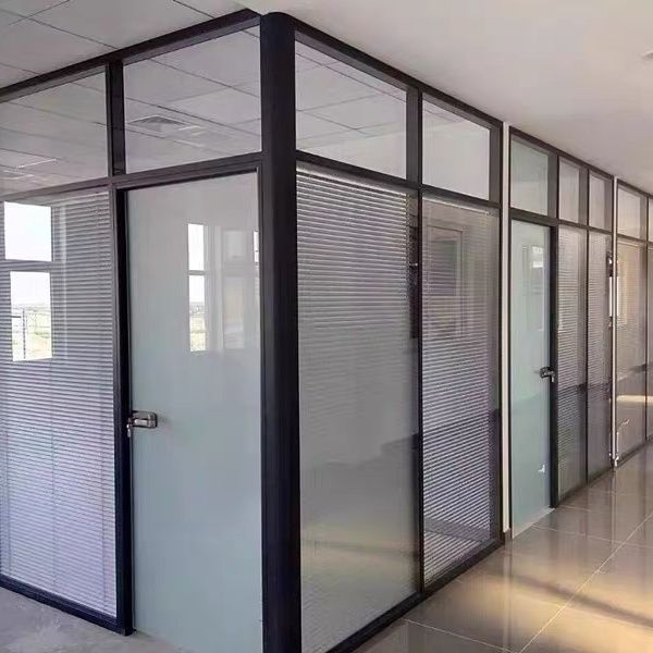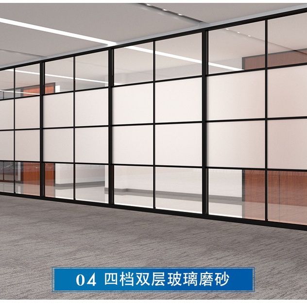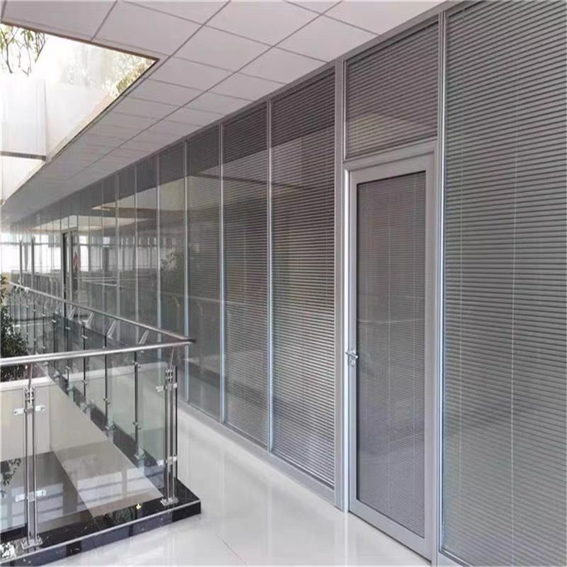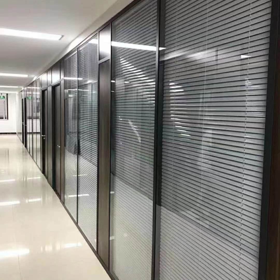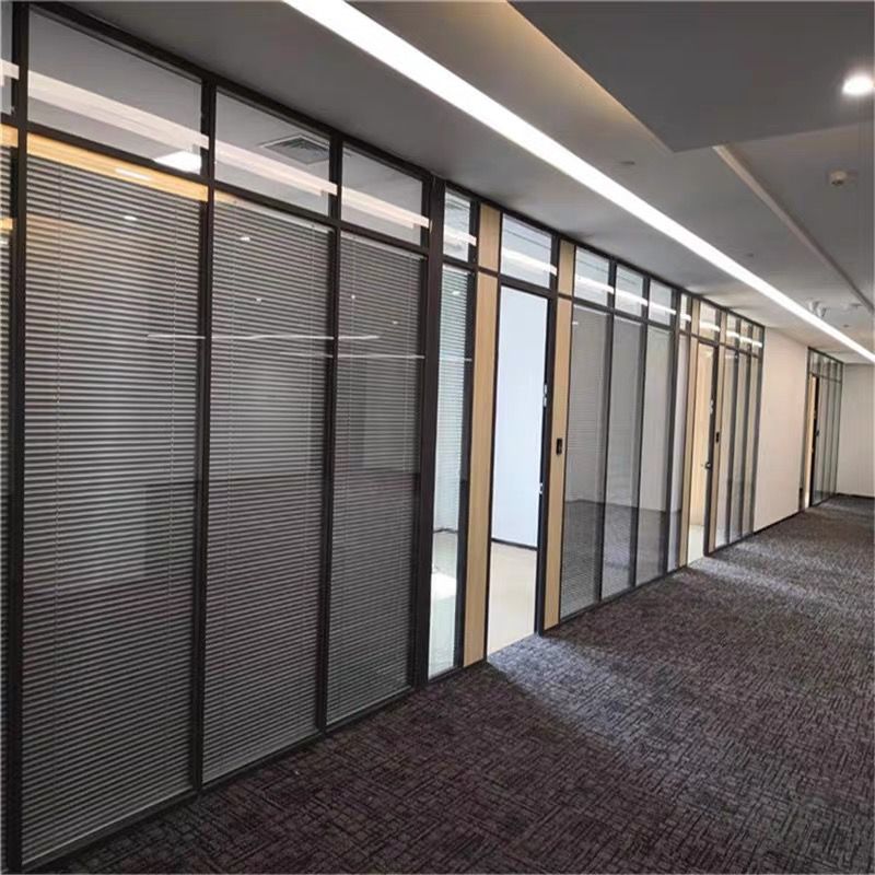 长沙株洲办公室玻璃隔断墙铝合金双层中空百叶钢化磨砂成品高间隔
